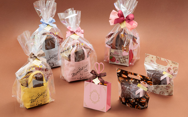 プチギフトにおすすめの「スイートポッシェ」やカカオ柄のバッグ「クオーレ」、かわいいアニマル柄の「バレンタインバスケット」は、3色からお好きな柄をお選びいただけます。ミニバッグやキュートなくまの「ラブリーベア」の入れ物は、小物入れなどにアフターユース可能です。