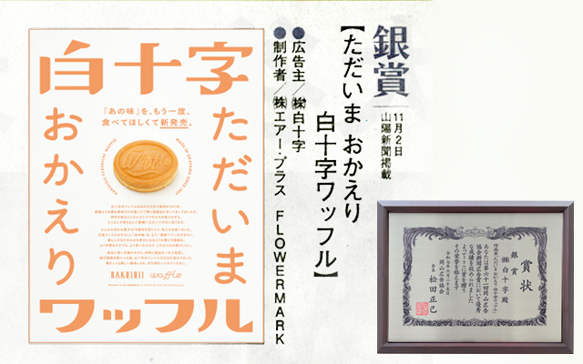 「令和6年度 岡山広告賞」の「第61回(令和6年度) 岡山広告協会新聞広告賞」において、令和6年11月2日山陽新聞朝刊掲載広告【ただいま おかえり 白十字ワッフル】が銀賞を受賞しました。