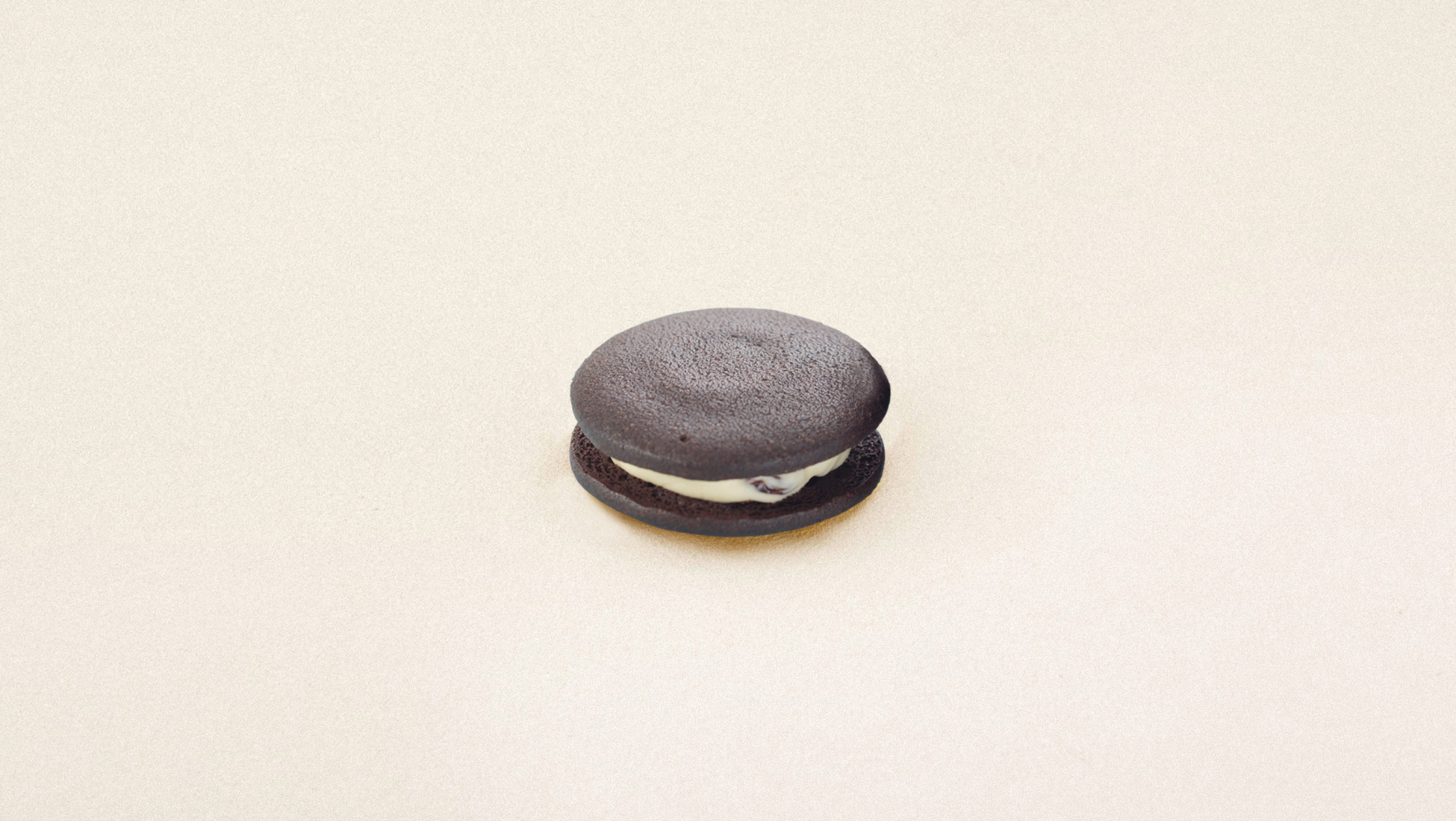 クッキー生地は、白いクッキーではなくあえて真っ黒なブラックココアを使用。クッキー生地はクリームをサンドしてもしっとりとなりにくい、さくっとした食感。ほろ苦いブラックココアと相性の良いホワイトチョコレートクリームの配合にもこだわっています。