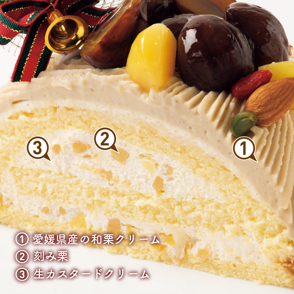刻み栗を忍ばせてまろやかな愛媛県産の和栗クリームをたっぷりと絞りました。栗特有の上品でやさしい甘さとほっこりとした風味はモンブラン好きにこそ食べてほしい特別な味わい。