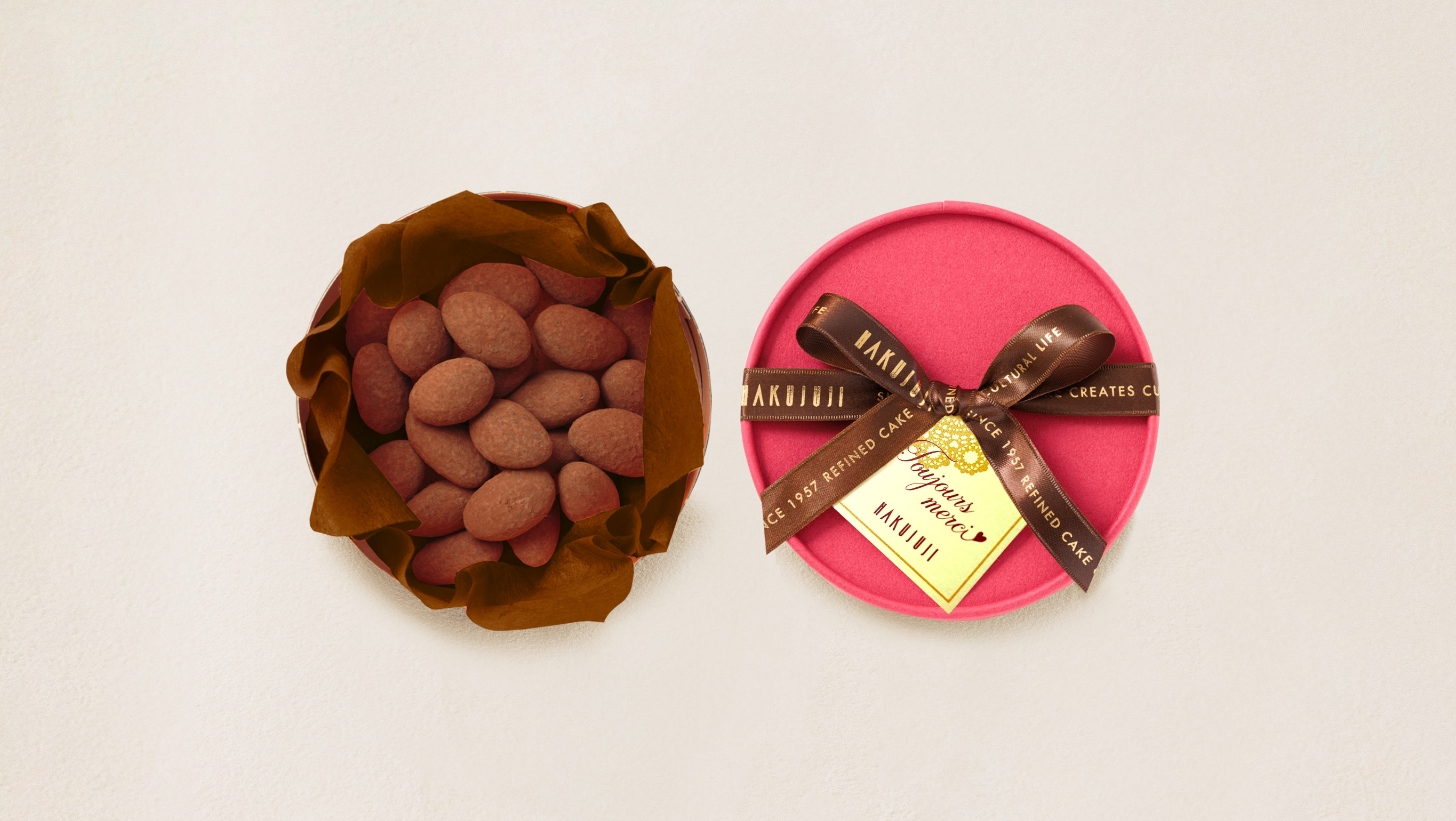 ローストしたアーモンドをチョコレートで包み、ココアをまぶしたカリッとしたアマンドショコラ。